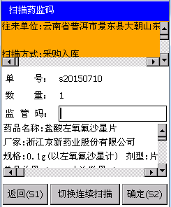 掃描監管碼同時(shí)顯示藥品的廠(chǎng)家、規格、包裝比例等信息。